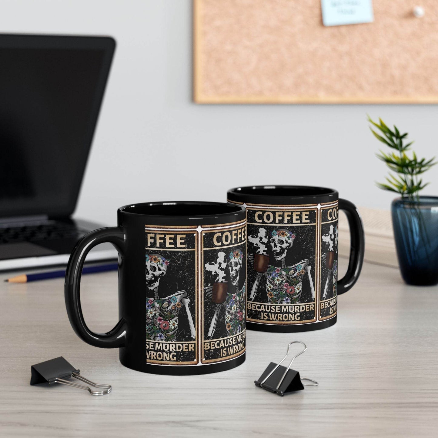 Introducing our stunning Black Mug, the perfect companion for your morning coffee or evening tea. This ceramic mug features a glossy finish that catches the light beautifully, adding a touch of elegance to your daily routine. Whether you're at home, in the office, or enjoying a cozy gathering with friends, this mug sets a playful yet sophisticated vibe that suits any occasion. Ideal for coffee enthusiasts and pop culture fans, it makes a thoughtful gift for birthdays, holidays, or just because. Elevate your sipping experience with a dash of personality!