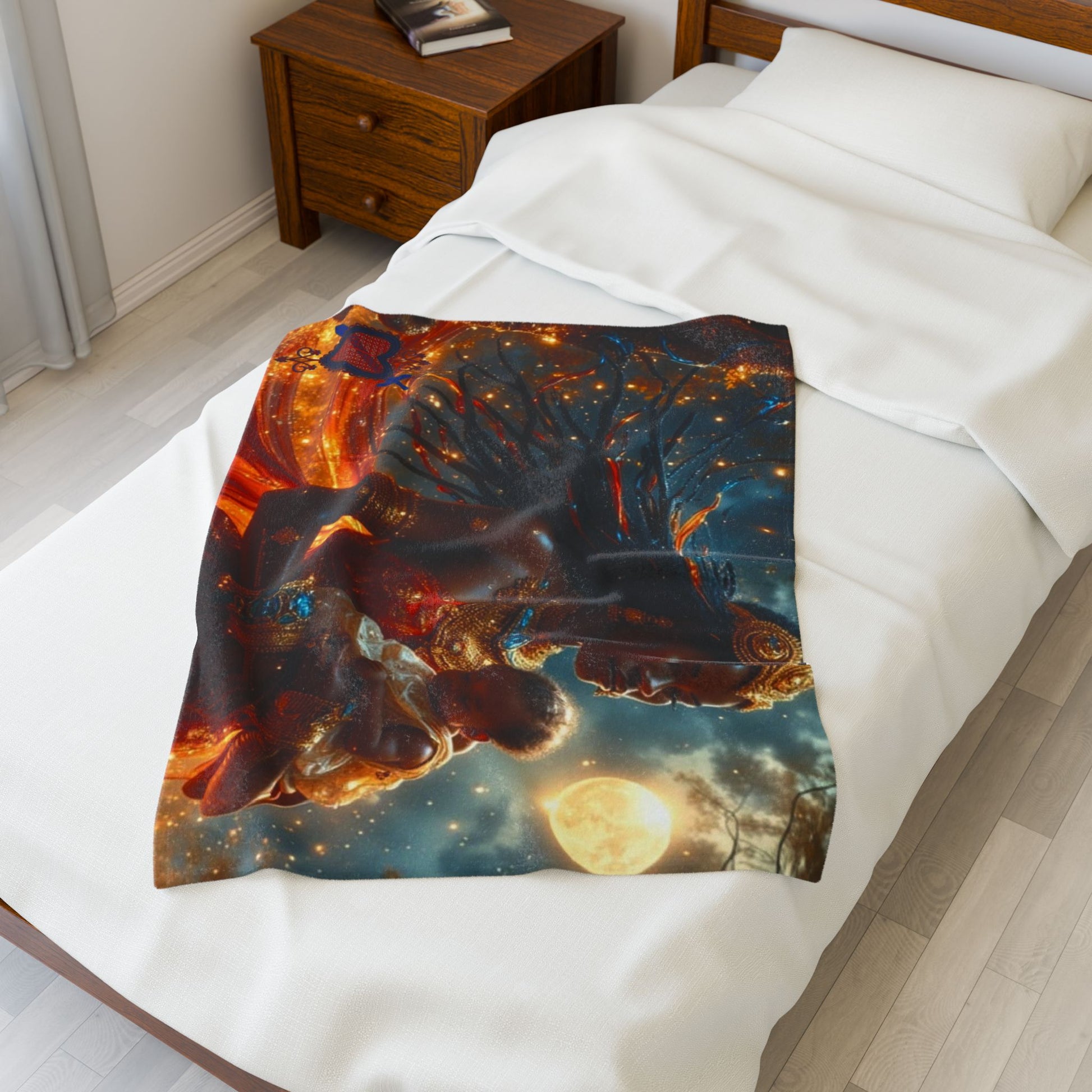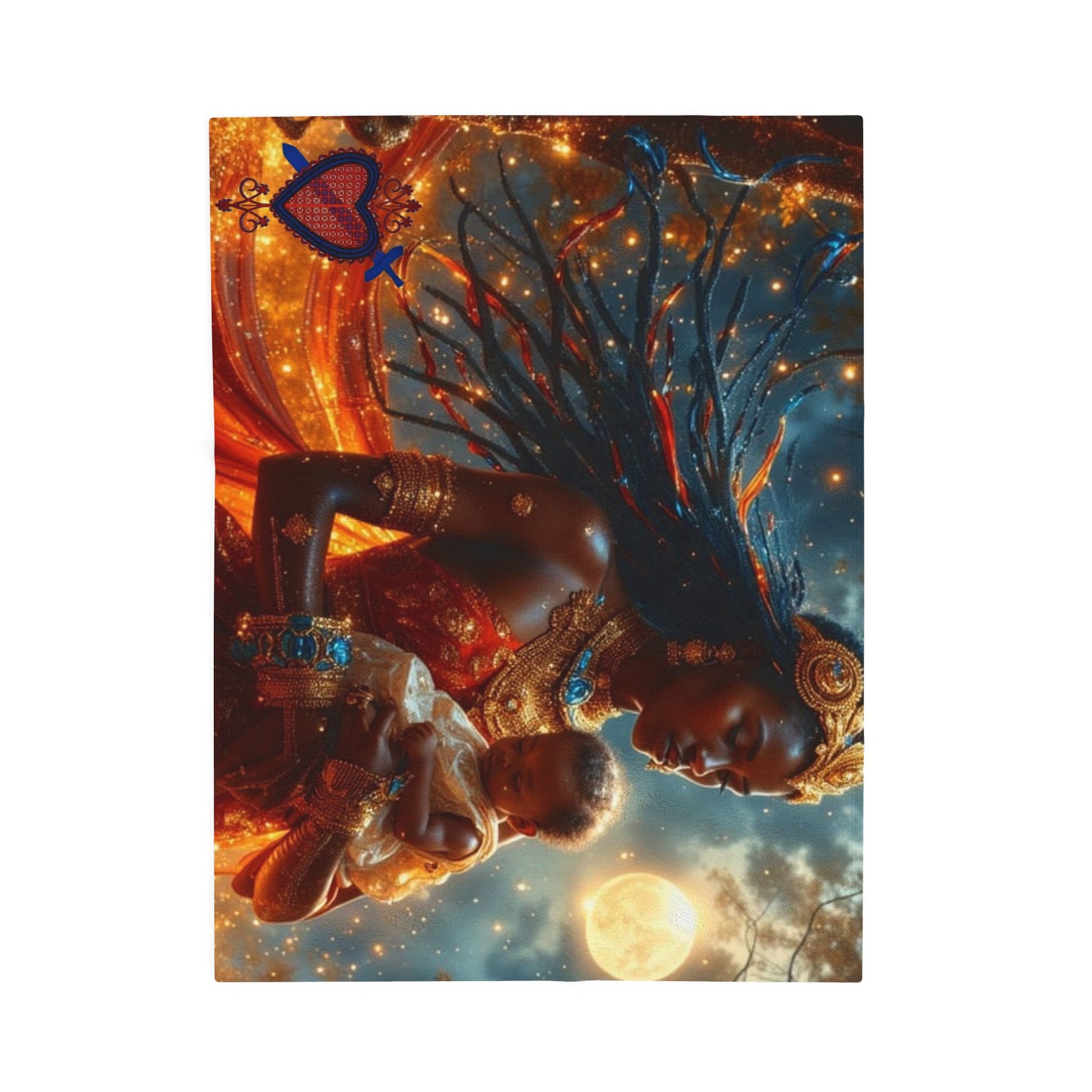 Cosmic Motherhood Velveteen Blanket Èzili Dantò - Cozy Throw for Embracing Love, Celestial Decor, Gifts for New Moms, Starry Home Accessory