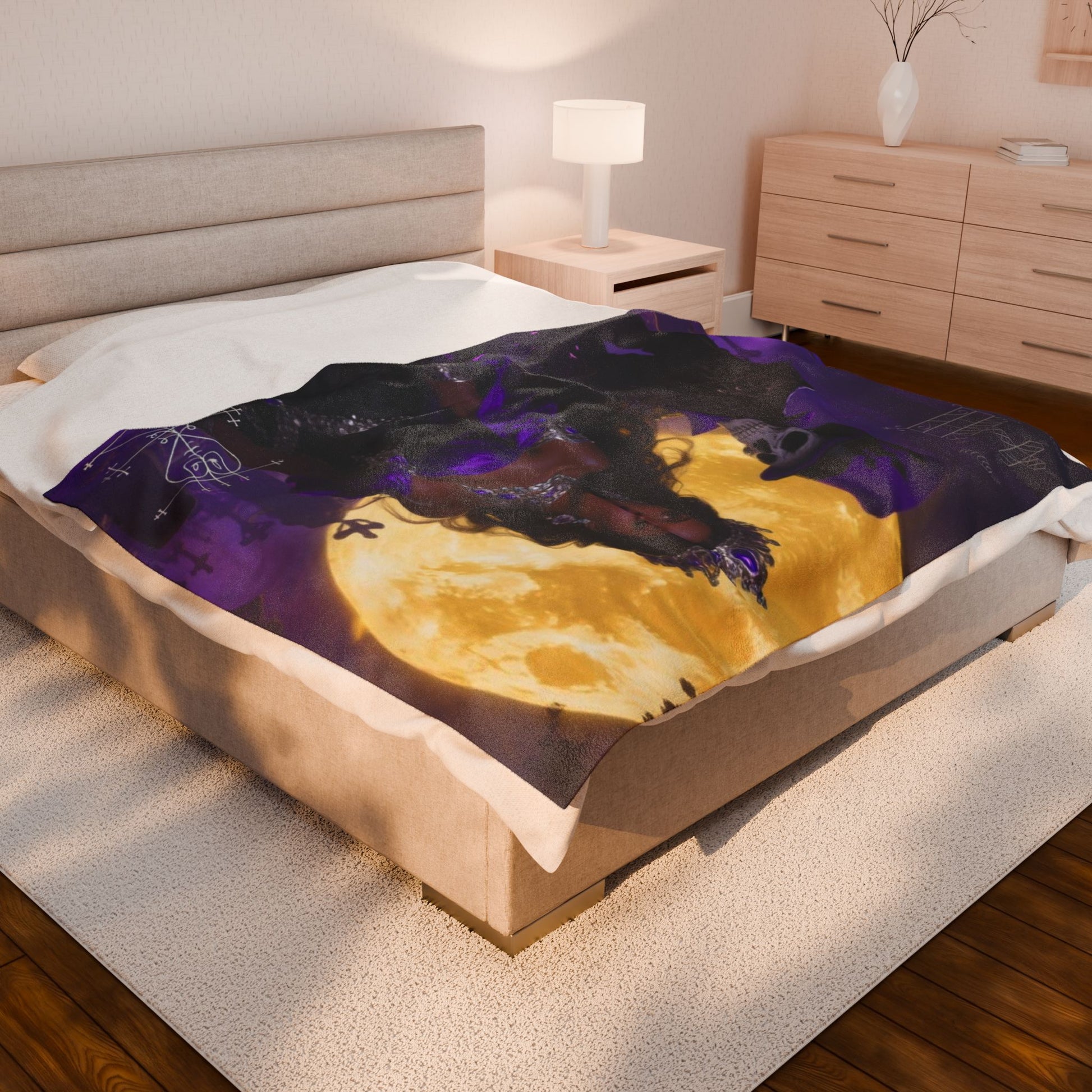 Enigmatic Ghede Moonlight Velveteen Plush Blanket | Cozy Throw for Halloween, Gothic Decor, Spooky Season, Home Sweet Home