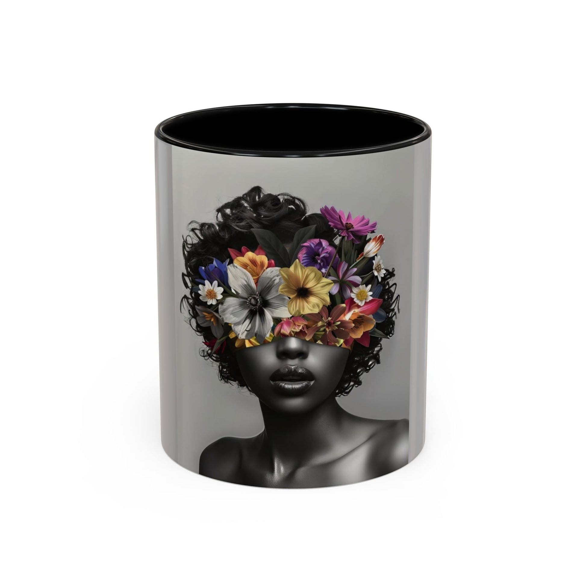 Floral Black Beauty Coffee Mug | Inspirational Drinkware for Coffee Lovers, Unique Gift for Her, Home Decor, Flower Lover's Mug