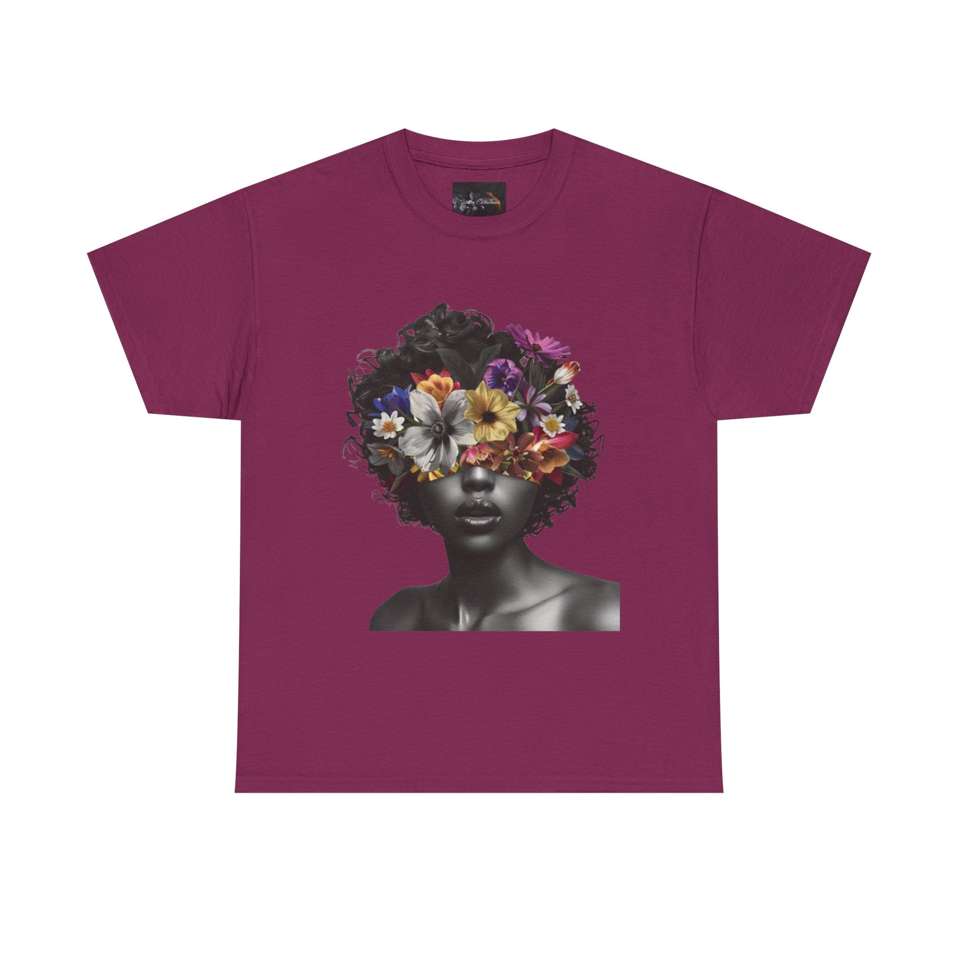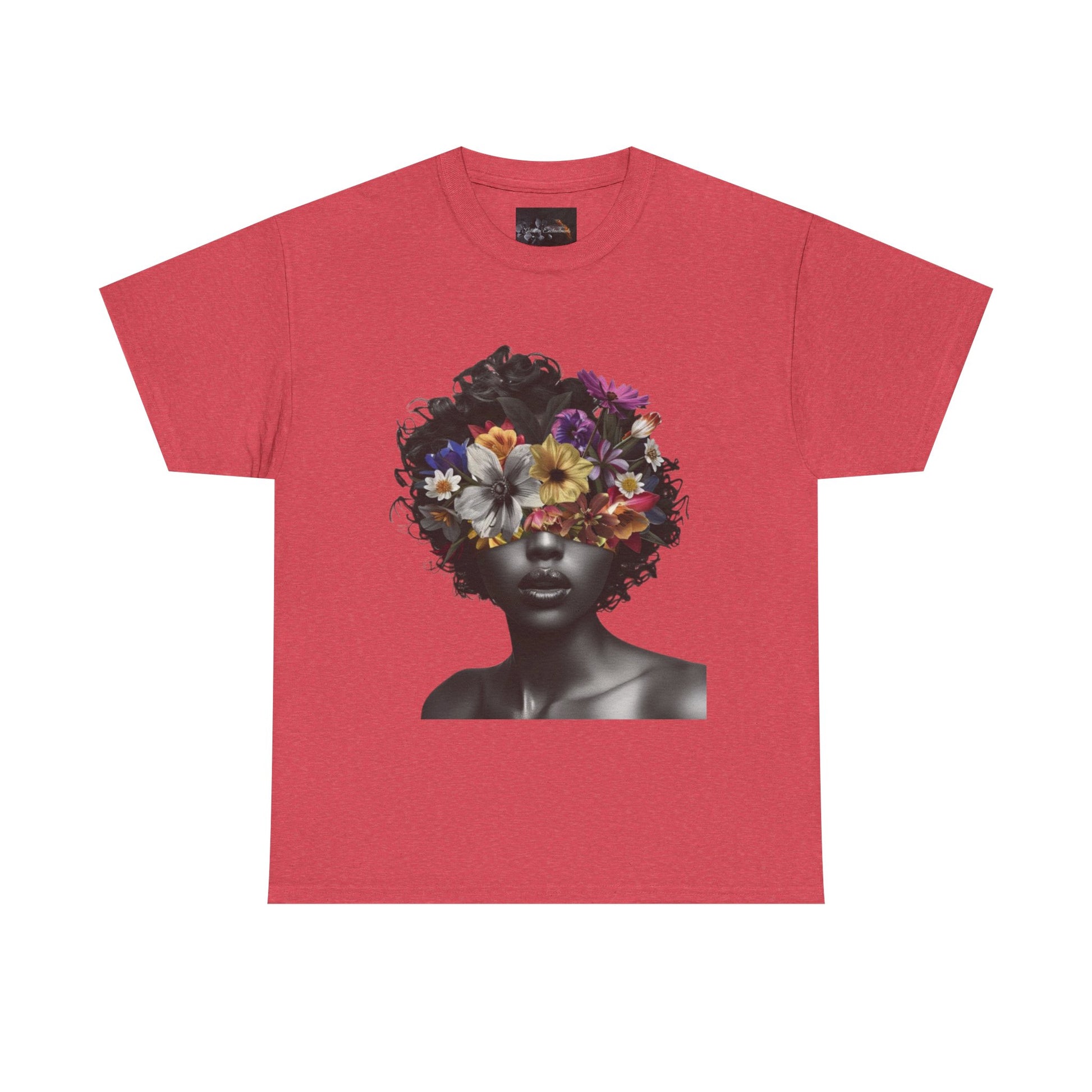 Floral Goddess Unisex Heavy Cotton Tee | Flower Graphic Tee, Boho Style, Casual Wear, Unique Gift, Art Tee