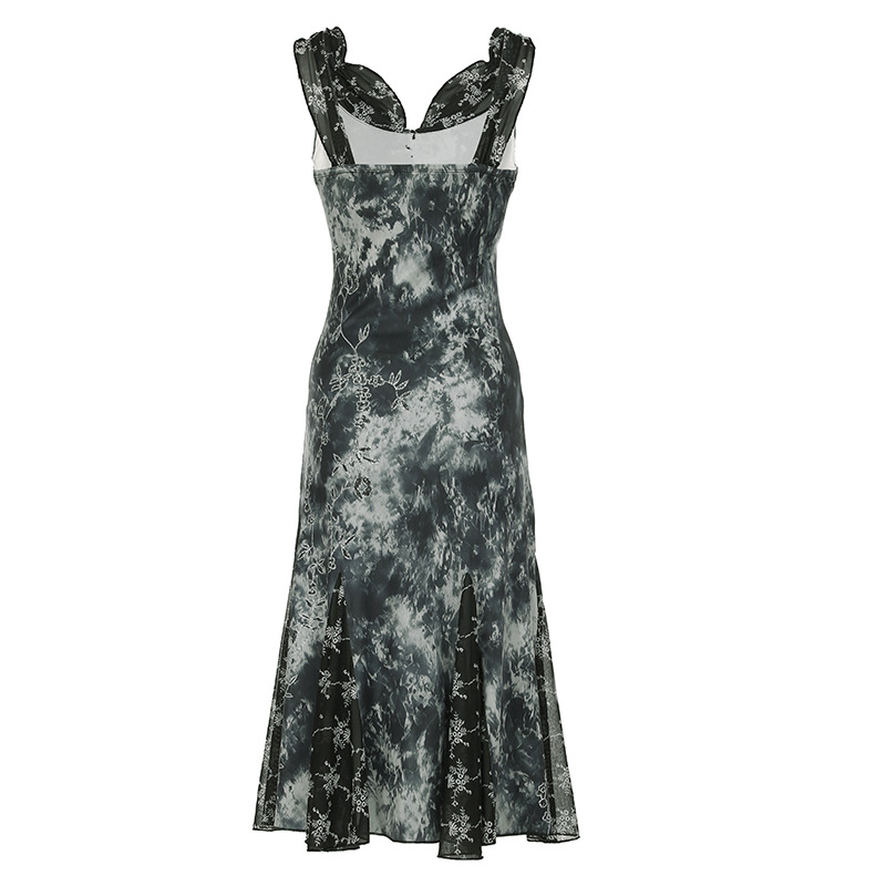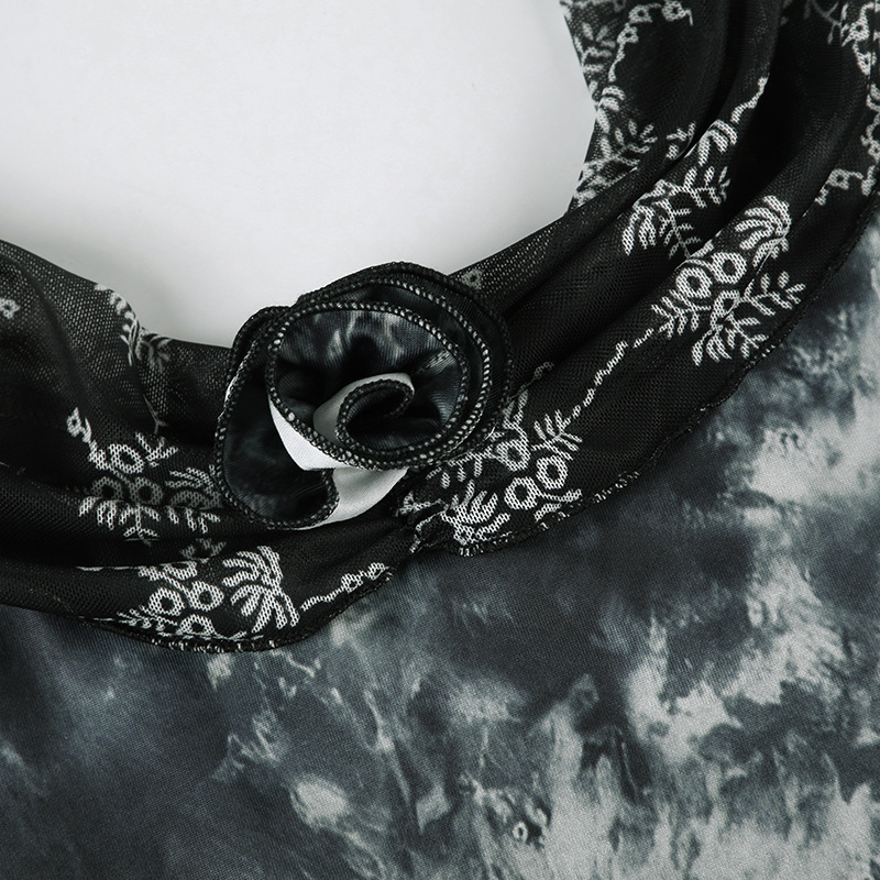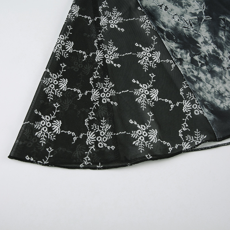 Step into dark elegance with the Gothic Vintage Tie-Dye Floral Ruffle Dress. Featuring a daring irregular hem and seductive lace mesh, this piece blends vintage charm with edgy flair, perfect for making a bold, unforgettable statement.