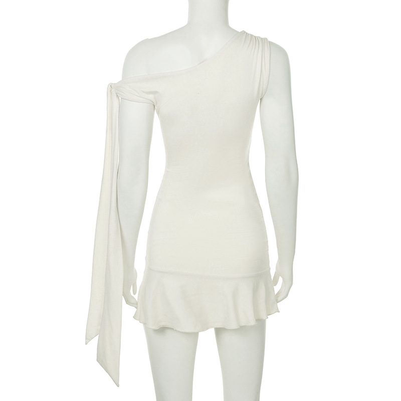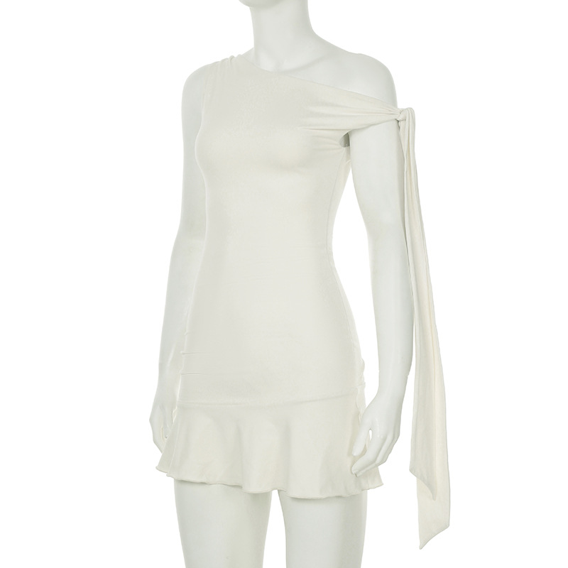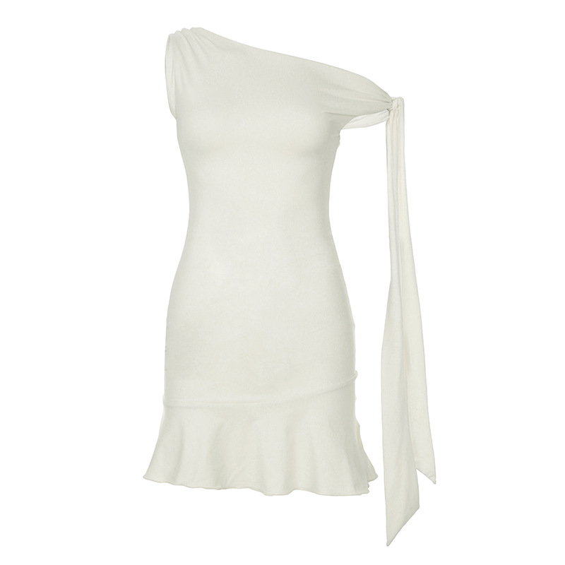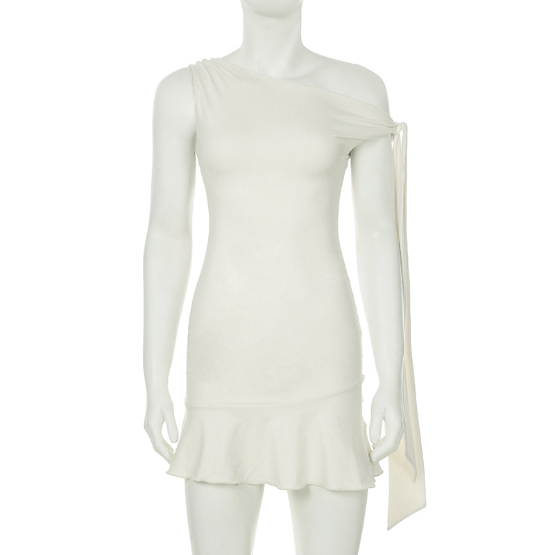 Sexy One-Shoulder Tie Strap Sleeveless Dress Slimming Waist-Cinching Short Skirt