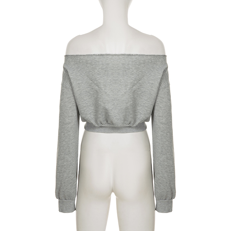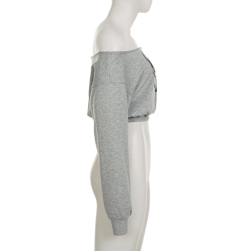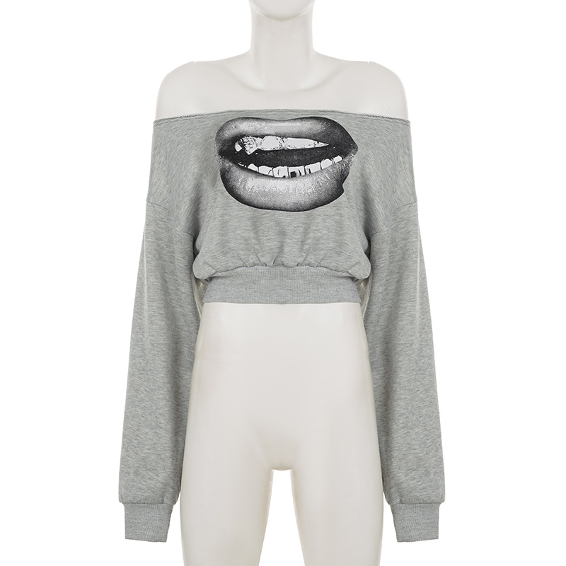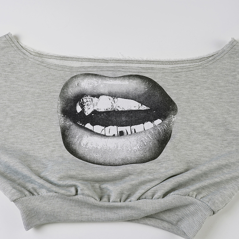 One-Shoulder Sweatshirt Big Mouth Print sweatshirt