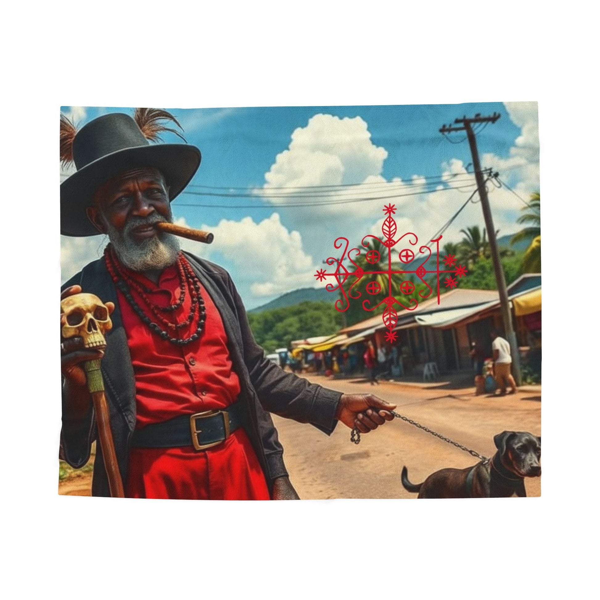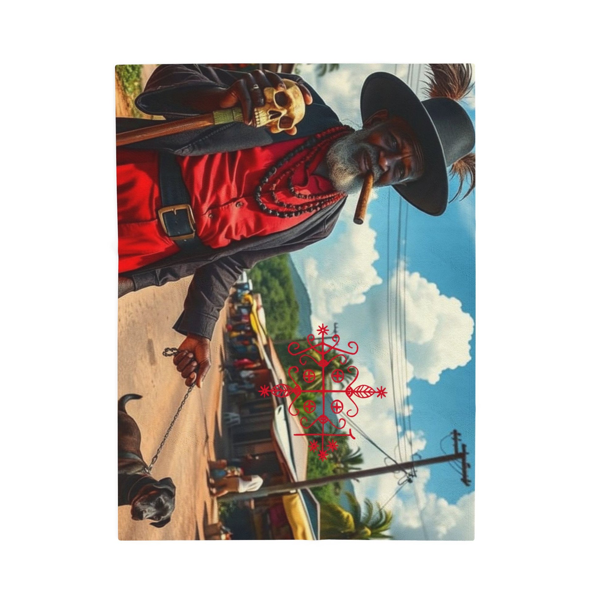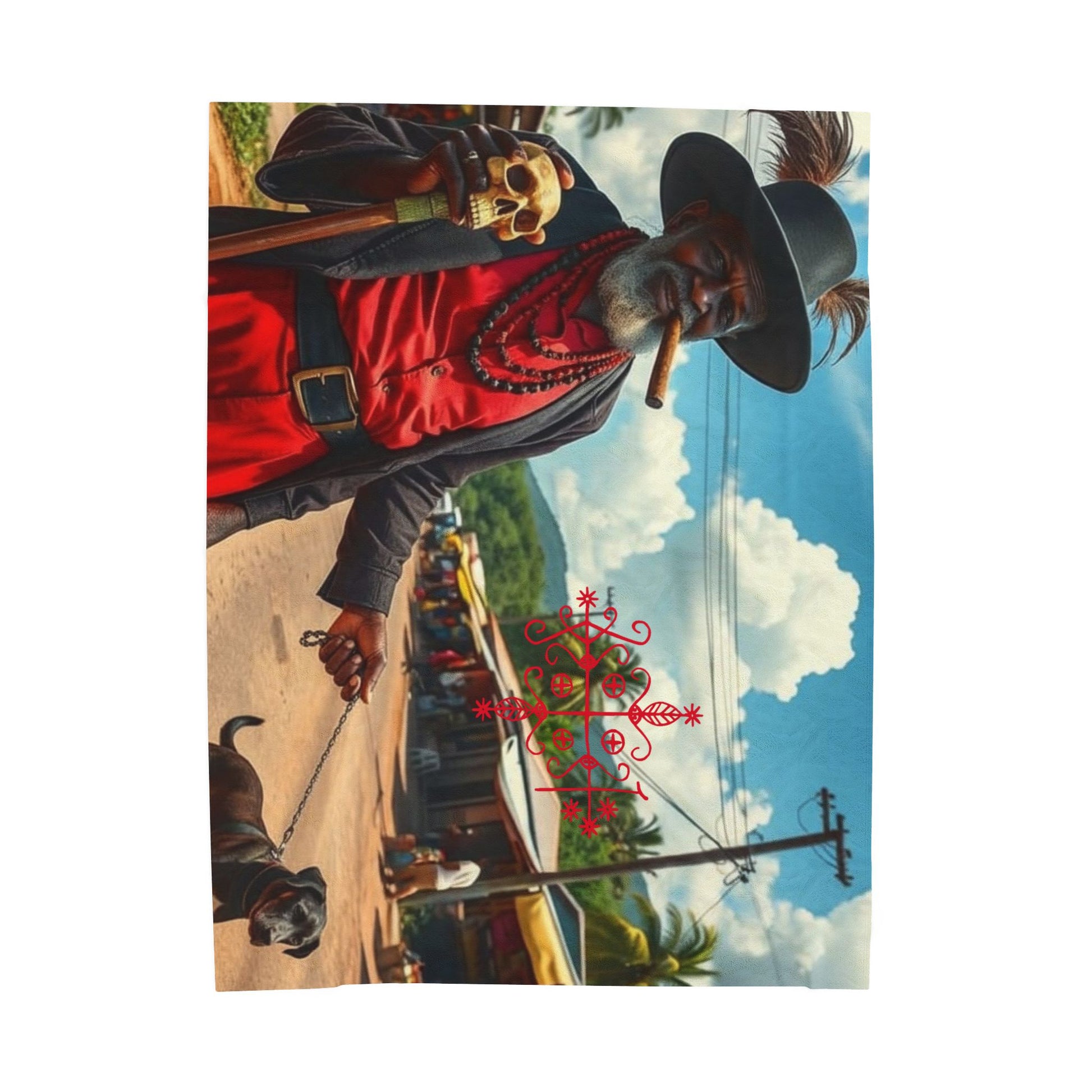 Vibrant Artistic Velveteen Plush Blanket Papa Legba, Cozy Home Decor, Unique Gift, Comfort Throw, Festival Blanket, Warm Artistry